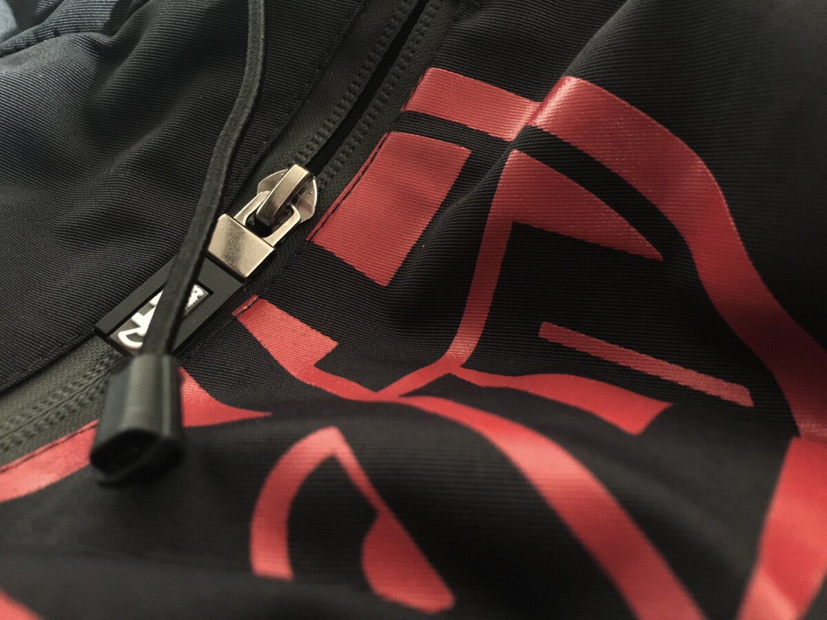 Volledige waterdichte ritssluiting aan de voorkant, waterdichte zak met ritssluiting op de borst en twee grote zijzakken aan de voorzijde met verticale ritsen bedekt door een brede beschermende flap. Binnenvak met ritssluiting. Al deze zakken bieden praktische opslag.